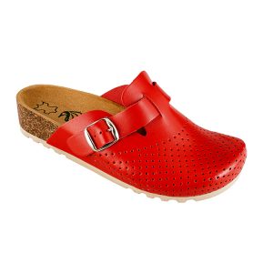 Кожни кломпи со плута V007- црвена